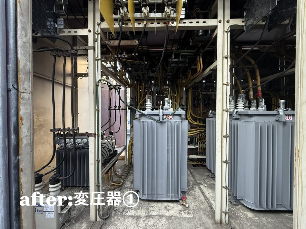 受変電設備工事とは、電力会社から供給された特別電圧の電気を、用途に合わせた電圧に変換する設備のことです。
